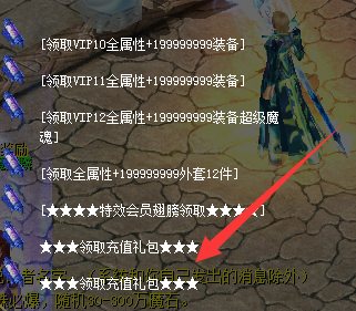 冲值成功后直接去仓库对面 领取会员装备NPC那里领取充值对应金额的礼包 天使修里面的MS会自动翻几十倍压缩到大礼包里面 |